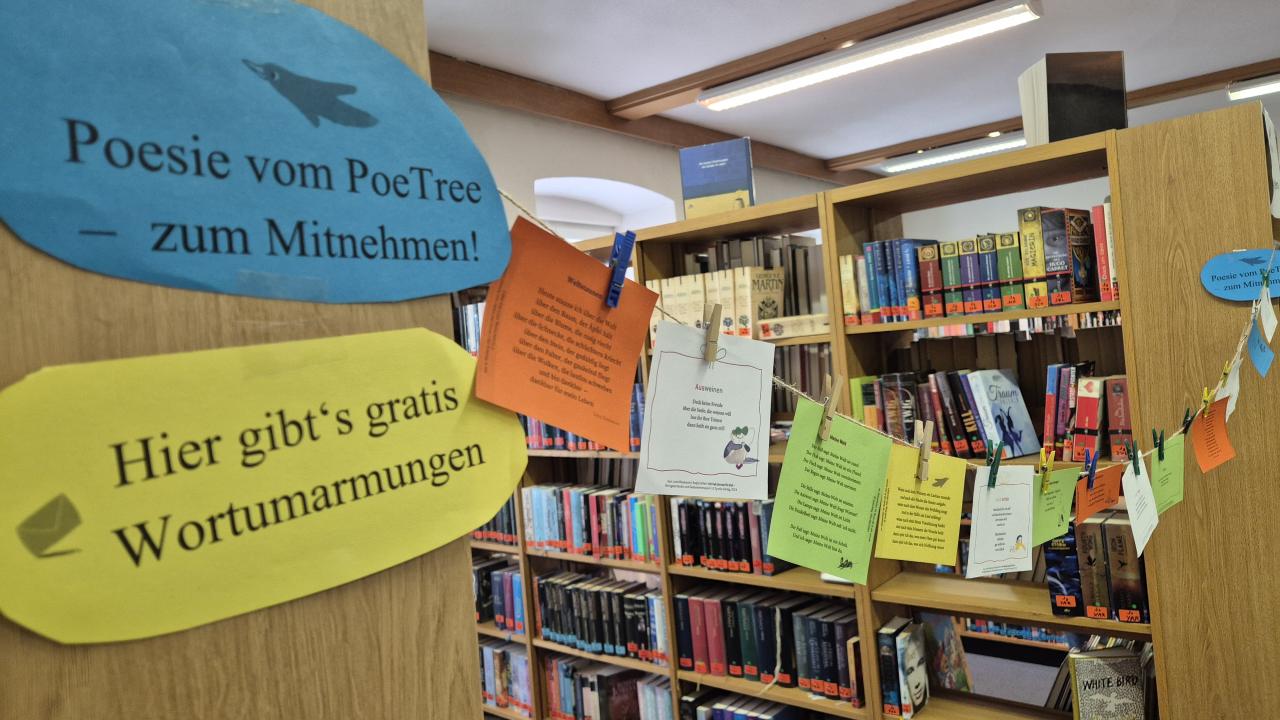 Rund um den Welttag der Poesie (21. März 2026) lädt euch die Bibliothek Schwanenstadt dazu ein, Worte zu pflücken. Nehmt euch ein Pflückgedicht von der Leine, lasst euch inspirieren und tragt ein Stück Poesie mit nach Hause.