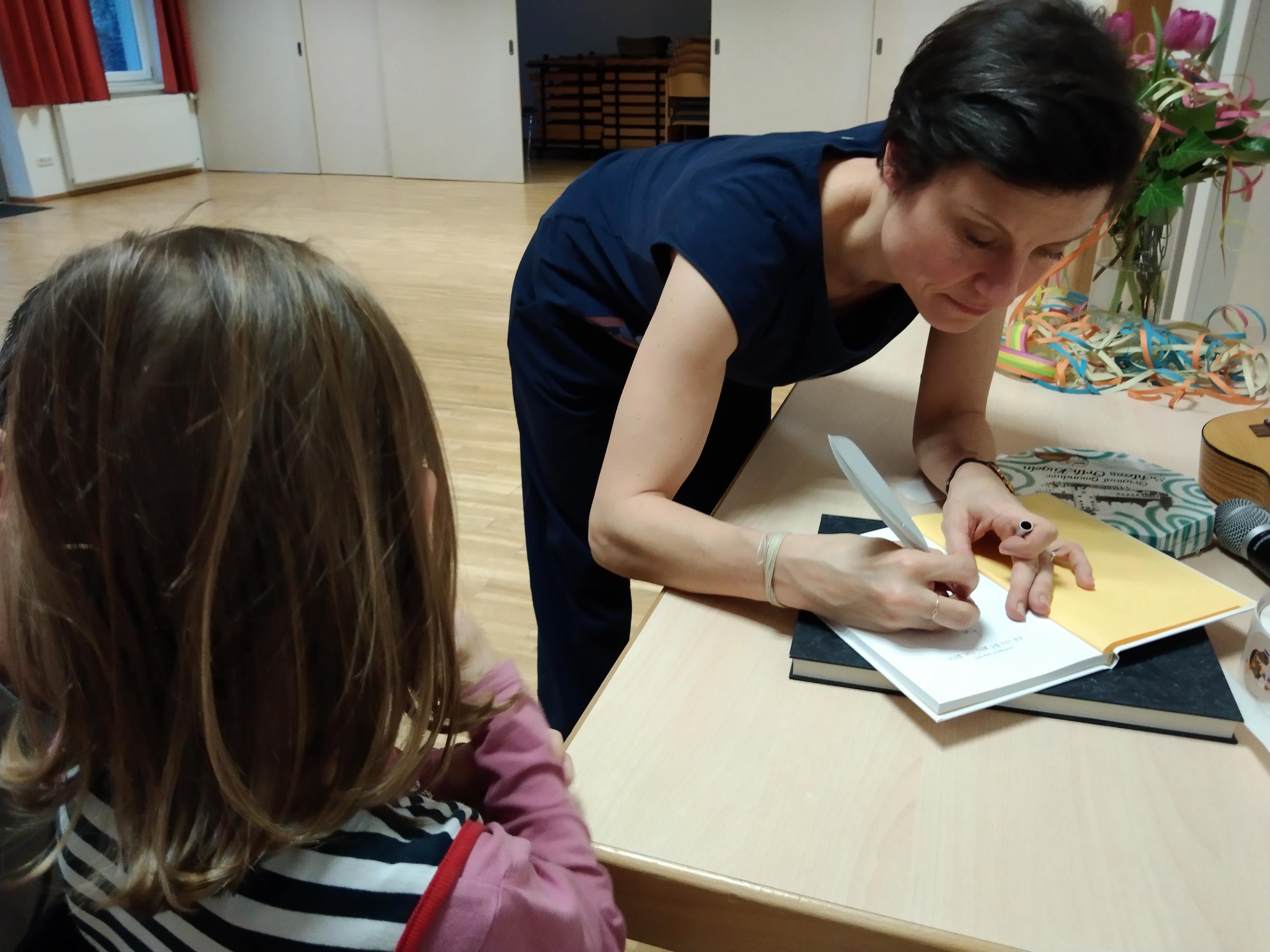 Zum Abschluss gab es Schildkröten-Sticker und „Pflückgedichte“ für die Kinder, anschließend blieb Zeit für persönliche Gespräche und für Signieren von Büchern.